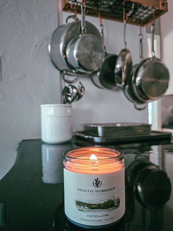 At Veld Co. Workshop, we design and produce custom objects using steel, wood and wax. Our work spans hand-poured soy candles, interior accessories, and commissioned metal furniture pieces. Every item is produced in our New Braunfels workshop with focus on quality, durability, and long-term use.